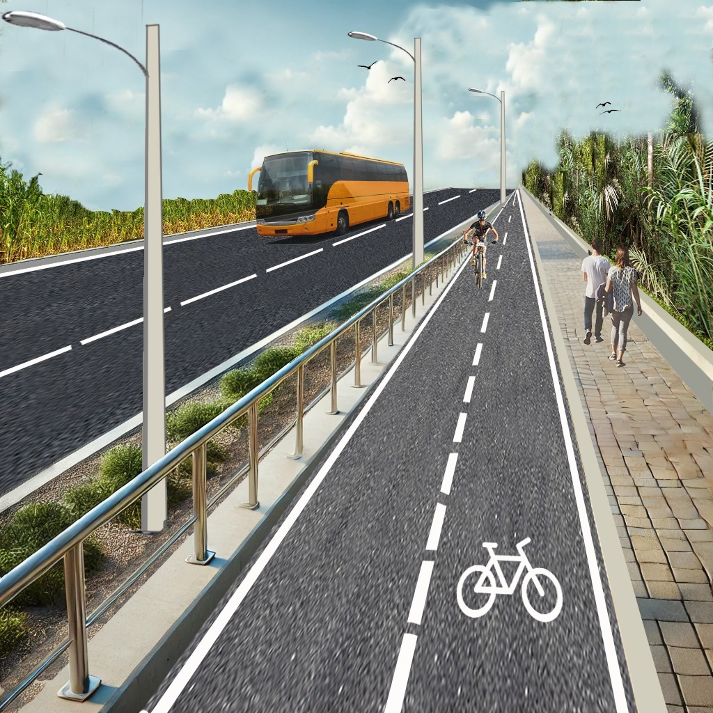 La infraestructura contempla, área exclusiva para ciclistas, señalización horizontal y vertical, caminería exclusiva para peatones, bordillos, mobiliario urbano, implementación de un punto de hidratación, iluminación, acompañado de espacios para la generación de áreas verdes, entre otros beneficios que al mismo tiempo busca integrar lugares de destino bio-saludables.